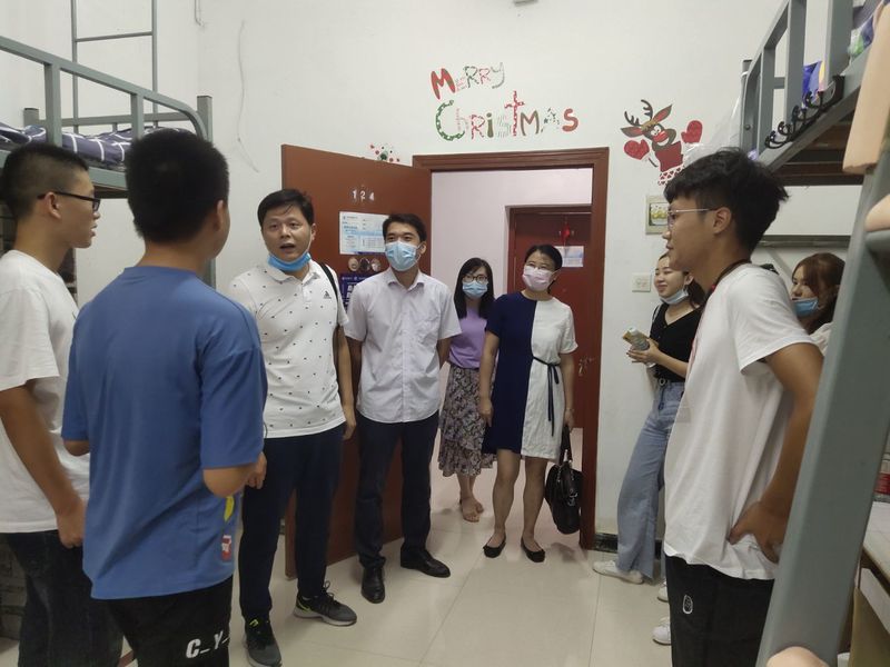 (通讯员:谭博玟)为近距离了解bwin必赢在线登入老生、专升本学生、研究生返校情况、强调疫情防控和安全问题,2020年9月6日下午,bwin必赢在线登入领导老师带队走访学生宿舍,看望bwin必赢在线登入全体返校学生。参与本次走访活动的有bwin必赢在线登入党总支书记林永希、院长陈中文、党总支副书记胡周友、副院长徐小双、宋淑娟、黄克斌、院长助理程云、各年级辅导员、学生会主席团成员及部门干部等。