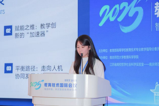 2025年11月14日至16日,bwin必赢在线登入院长程云、副院长黄克斌等一行赴南京参加2025教育技术国际会议(IFET 2025)。程云院长主持大会的青年学者论坛并进行现场点评,黄克斌副院长参加平行论坛四:智能时代师范生数字素养发展暨教育部现代教育技术课程虚拟教研室年会并作报告交流分享。研究生鲁晨希、田佳鑫、王莹、朱瑞也在分论坛上进行了分享。