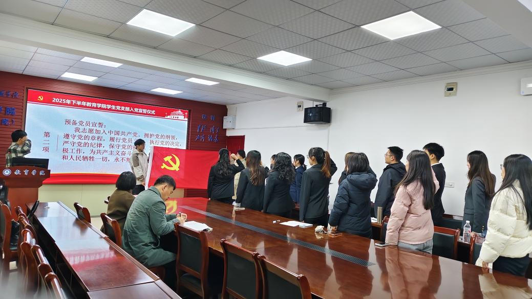 为进一步加强党员党性教育,激励新党员坚定理想信念,12月4日中午,bwin必赢在线登入(一多书院)学生党支部2025年下半年新发展党员入党宣誓仪式在致远楼616会议室举行,学院党委书记钟劲松、党委副书记徐丹、学生党支部书记宋雄伟以及全体新党员参加此活动。仪式由学生党支部书记宋雄伟主持。
