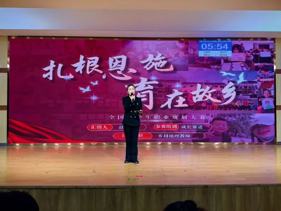 比赛现场氛围热烈而有序,灯光聚焦的舞台上,参赛选手依次登台展示。他们借助精心制作的PPT,围绕自我认知、职业目标等核心模块,结合教育专业特色、个人兴趣特长与行业发展趋势,生动阐述职业规划蓝图。有的选手聚焦基础教育领域,详细规划从实习教师到骨干教师的成长路径;有的选手结合跨学科发展趋势,构建“教育+科技”的职业发展框架。展示过程中,选手们精神饱满、表达流畅,面对评委老师的现场提问,从容应答、逻辑清晰,充分展现了扎实的专业素养、清晰的思维能力与积极向上的精神风貌。领导老师认真聆听,依据展示内容与现场表现公正评分、精准点评,助力学子进一步明确职业方向、优化规划方案。