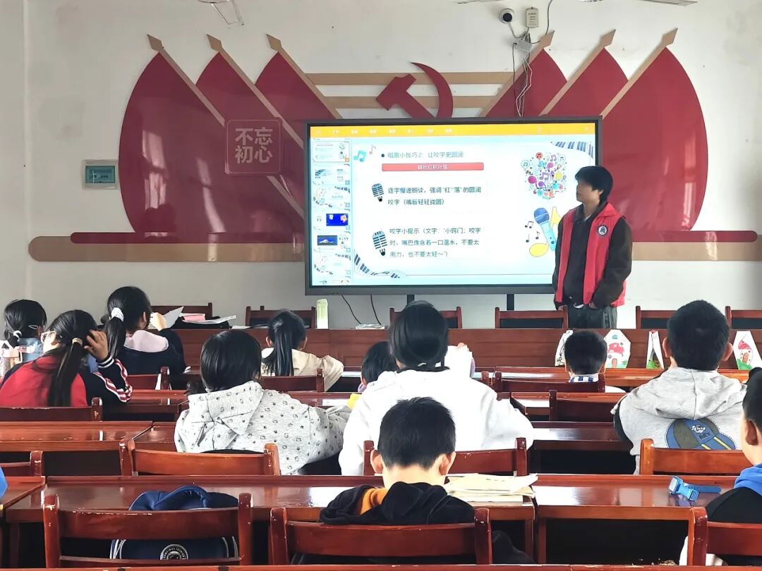 为了让孩子们更好地展现歌声,志愿者们先带来了几个实用的唱歌小技巧。他们从气息控制入手,教孩子们用腹部发力带动呼吸,让歌声更平稳绵长;再到音准把握,通过简单的音阶练习,帮助孩子们找准音调。孩子们听得格外认真,跟着志愿者的示范反复练习,稚嫩的脸庞上满是专注,课堂上不时响起整齐的练习声,为接下来的歌曲教习环节做好了充分准备。