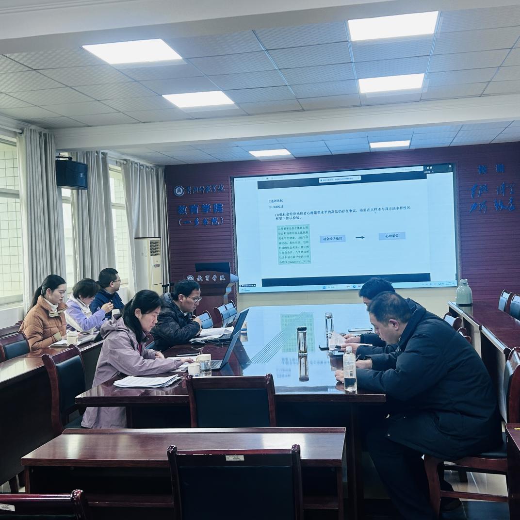 教育学组论证会由副院长韦耀阳教授主持。专场特邀华中师范大学人工智能教育学部博士生导师付卫东教授、黄冈师范学院马克思主义学院副院长李威教授(博士)担任评审专家,两位专家结合自身研究领域与评审经验,为课题申报提供专业指导。本组陈思、彭锦、韦耀阳、岳涛、游子欢、沈胜林、路雪、原凯等老师,依次汇报了课题申报书的修改完善情况,重点汇报了针对第一次论证会反馈问题的整改措施,展现出严谨的科研态度与扎实的改进成效。评审专家以严谨务实的态度,对各课题的研究定位、学术前沿性、实践价值及修改完善方向进行了细致点评,针对申报材料中仍存在的论证不充分、细节不规范等问题逐一指出,并提出可操作的修改意见,为教师进一步厘清研究路径、突破研究难点、提升申报书质量提供了有力支撑。